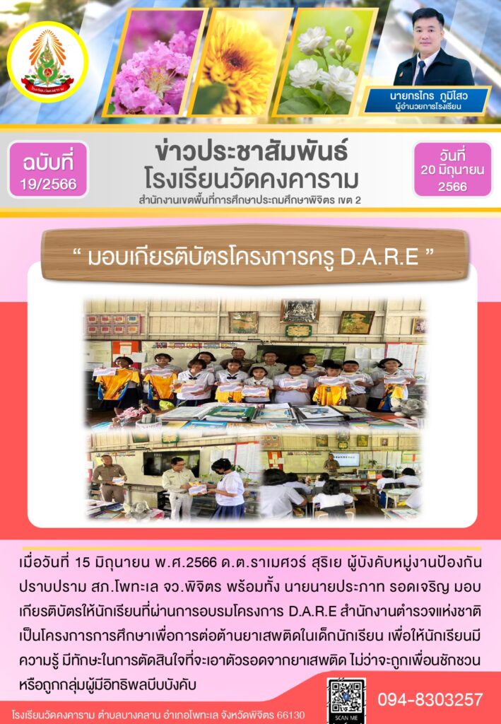 มอบเกียรติบัตรโครงการครู D.A.R.E