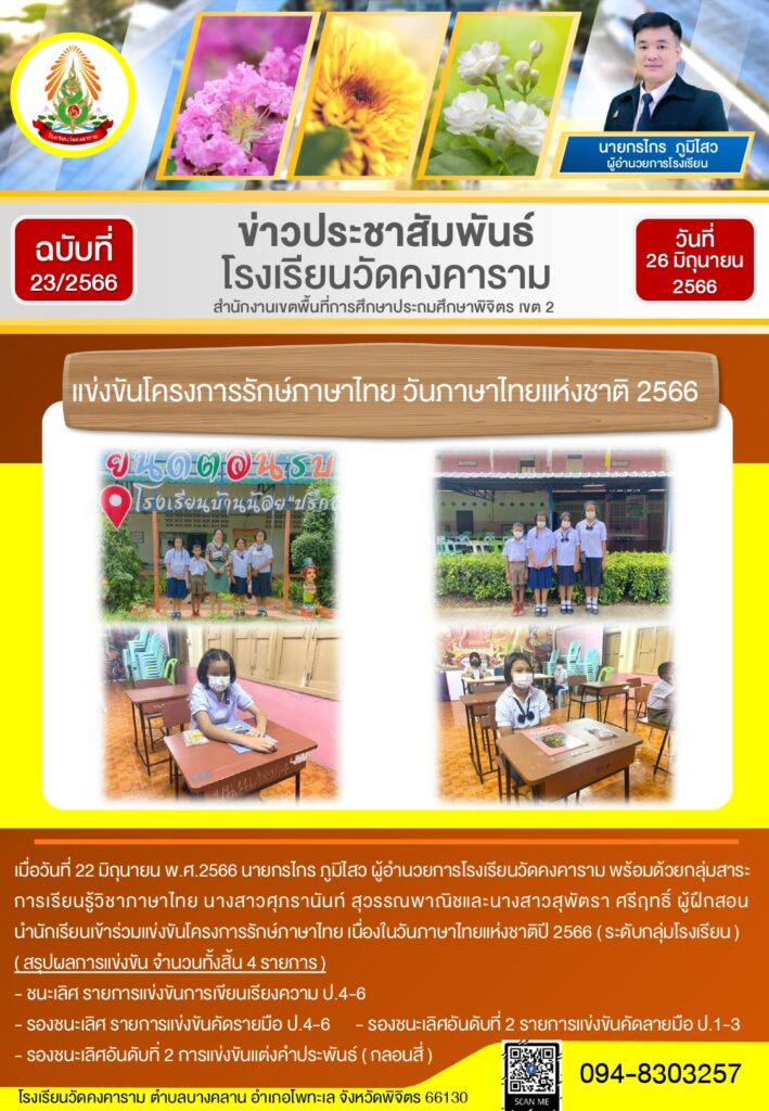 แข่งขันโครงการรักษ์ภาษาไทย เนื่องในวันภาษาไทยแห่งชาติ 2566 (ระดับกลุ่มโรงเรียน)