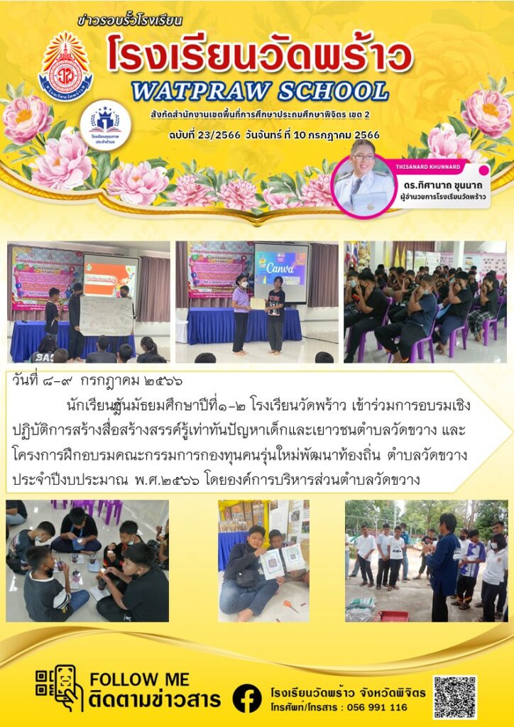 การอบรมเชิงปฏิบัติการสร้างสื่อสร้างสรรค์รู้เท่าทันปัญหาเด็กและเยาวชนตำบลวัดขวาง และโครงการฝึกอบรมคณะกรรมการกองทุนคนรุ่นใหม่พัฒนาท้องถิ่น ตำบลวัดขวาง ประจำปีงบประมาณ พ.ศ.2566