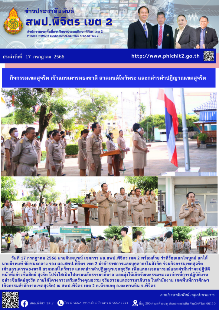 กิจกรรมเขตสุจริต เข้าแถวเคารพธงชาติ สวดมนต์ไหว้พระ และกล่าวคำปฏิญาณเขตสุจริต