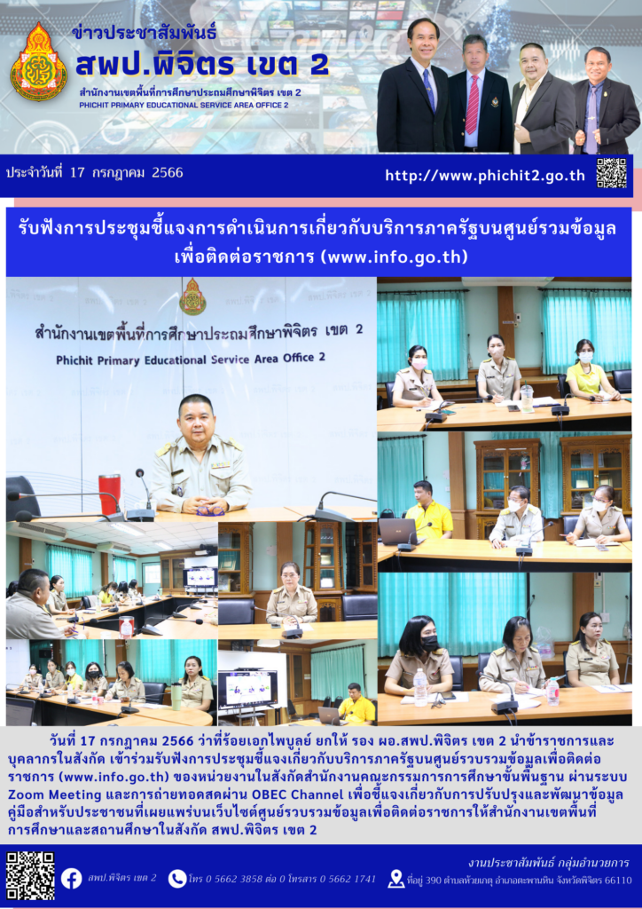 เข้าร่วมรับฟังการประชุมชี้แจงเกี่ยวกับบริการภาครัฐ บนศูนย์รวบรวมข้อมูลเพื่อติดต่อราชการ (ww.info.go.th)