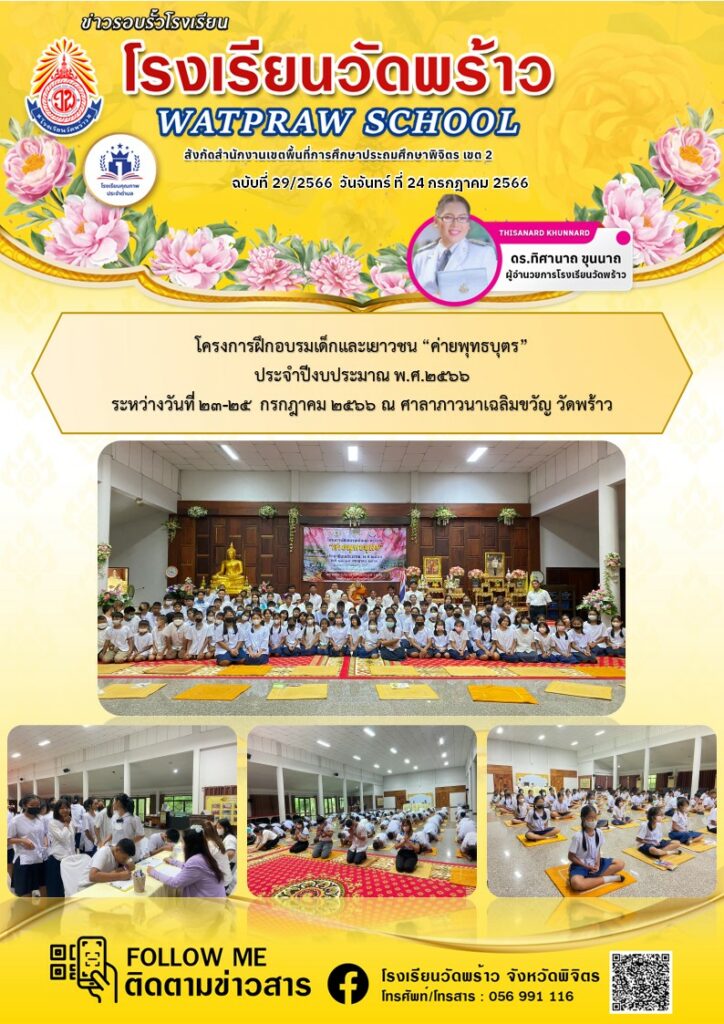 โครงการฝึกอบรมเด็กและเยาวชน “ค่ายพุทธบุตร” ประจำปีงบประมาณ พ.ศ.2566 โรงเรียนวัดพร้าว