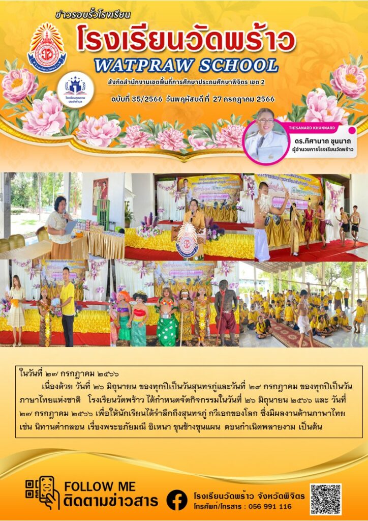 กิจกรรมวันสุนทรภู่และวันภาษาไทยแห่งชาติ ประจำปีการศึกษา 2566