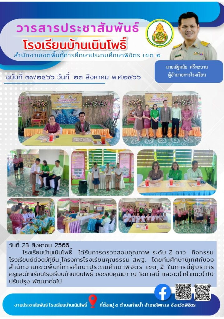 การตรวจสอบคุณภาพ ระดับ 2 ดาว กิจกรรมโรงเรียนดีต้องมีที่ยืน โครงการโรงเรียนคุณธรรม สพฐ.