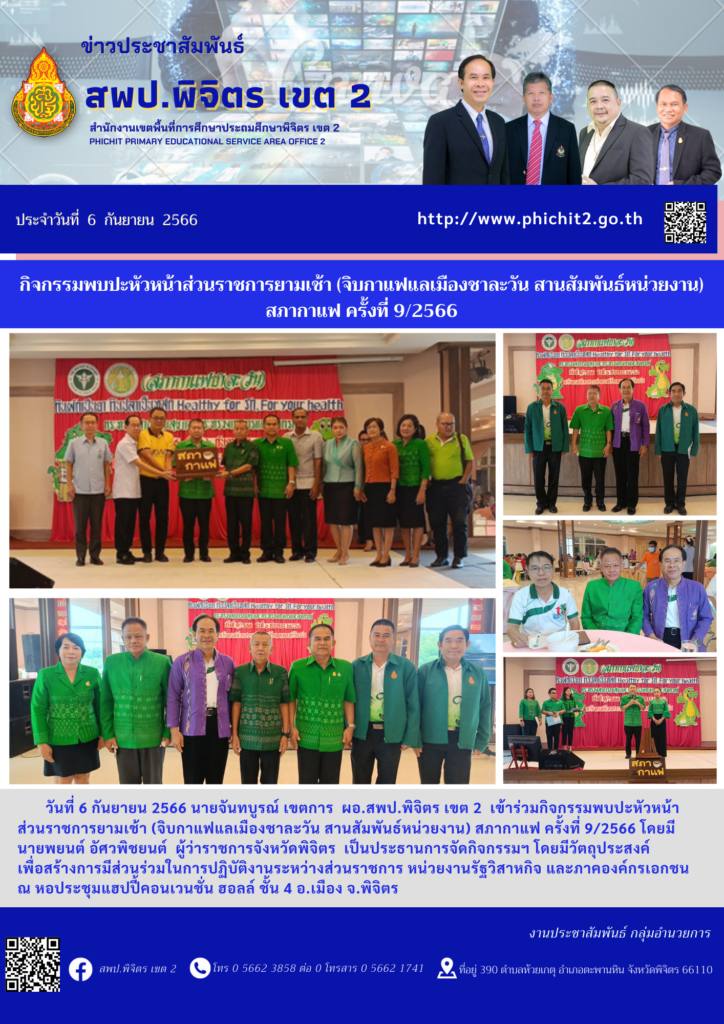 กิจกรรมพบปะหัวหน้าส่วนราชการยามเช้า (จิบกาแฟแลเมืองชาละวัน สานสัมพันธ์หน่วยงาน) สภากาแฟ ครั้งที่ 9/2566