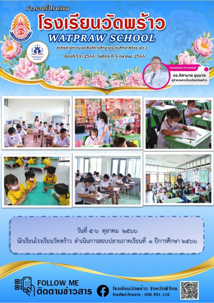 การสอบปลายภาคเรียนที่ 1 ปีการศึกษา 2566 โรงเรียนวัดพร้าว