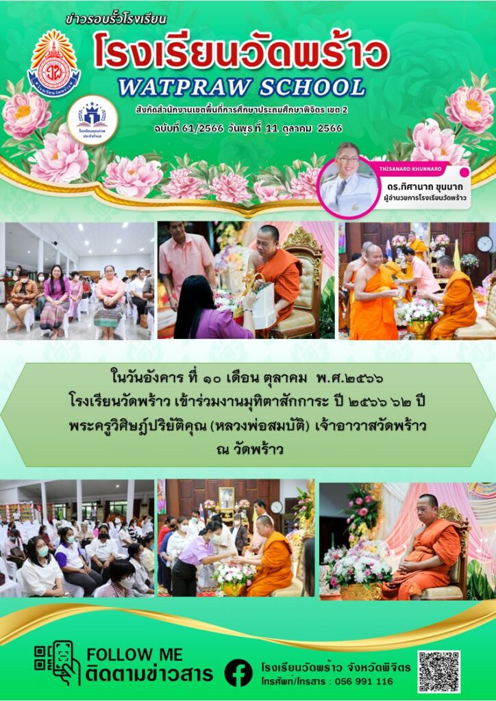 คณะครูโรงเรียนวัดพร้าวเข้าร่วมงานมุทิตาสักการะ ปี2566 ณ วัดพร้าว
