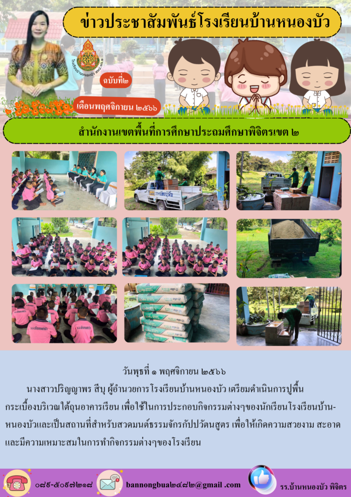 วันที่ 1 พ.ย.66 เตรียมดำเนินการปูพื้นกระเบื้องบริเวณใต้ถุนอาคารเรียน