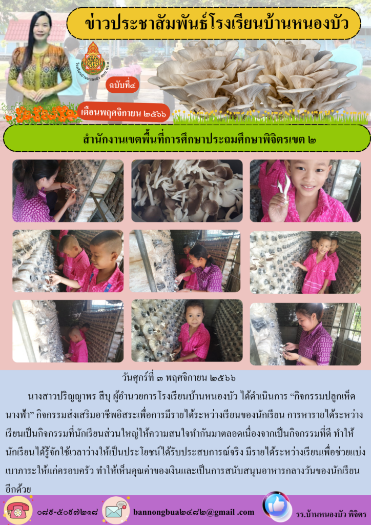 วันที่ 3 พ.ย.66 ได้ดำเนินการกิจกรรมโครงการปลูกเห็ดนางฟ้า