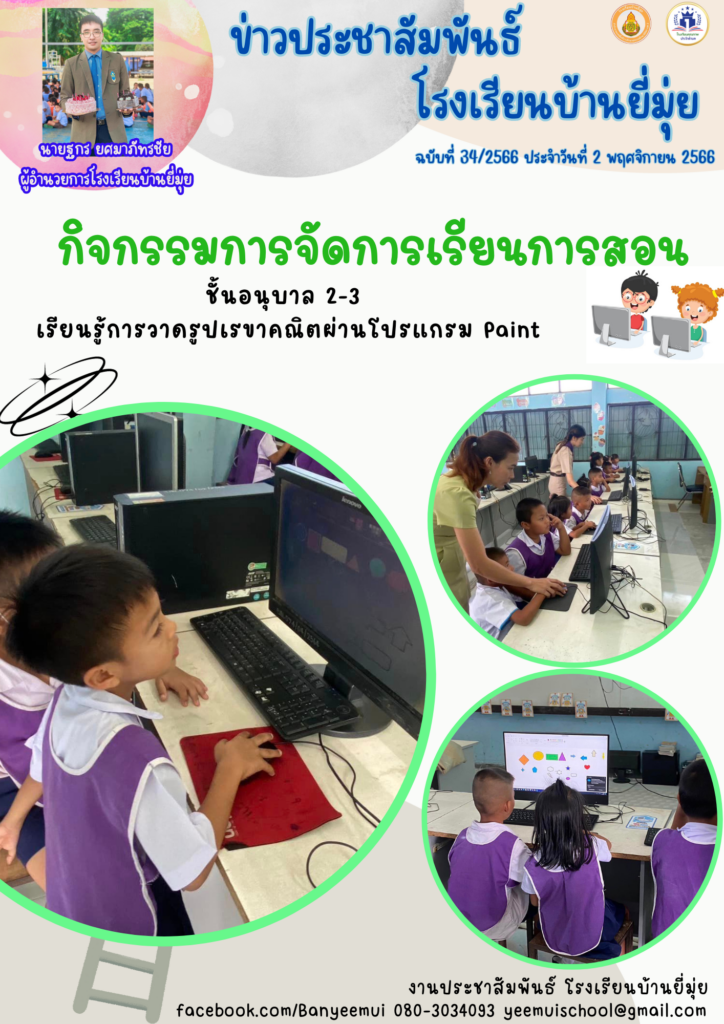 ชั้นอนุบาล 2 , 3 เรียนรู้การวาดรูปเลขาคณิตผ่านโปรแกรม PAINT