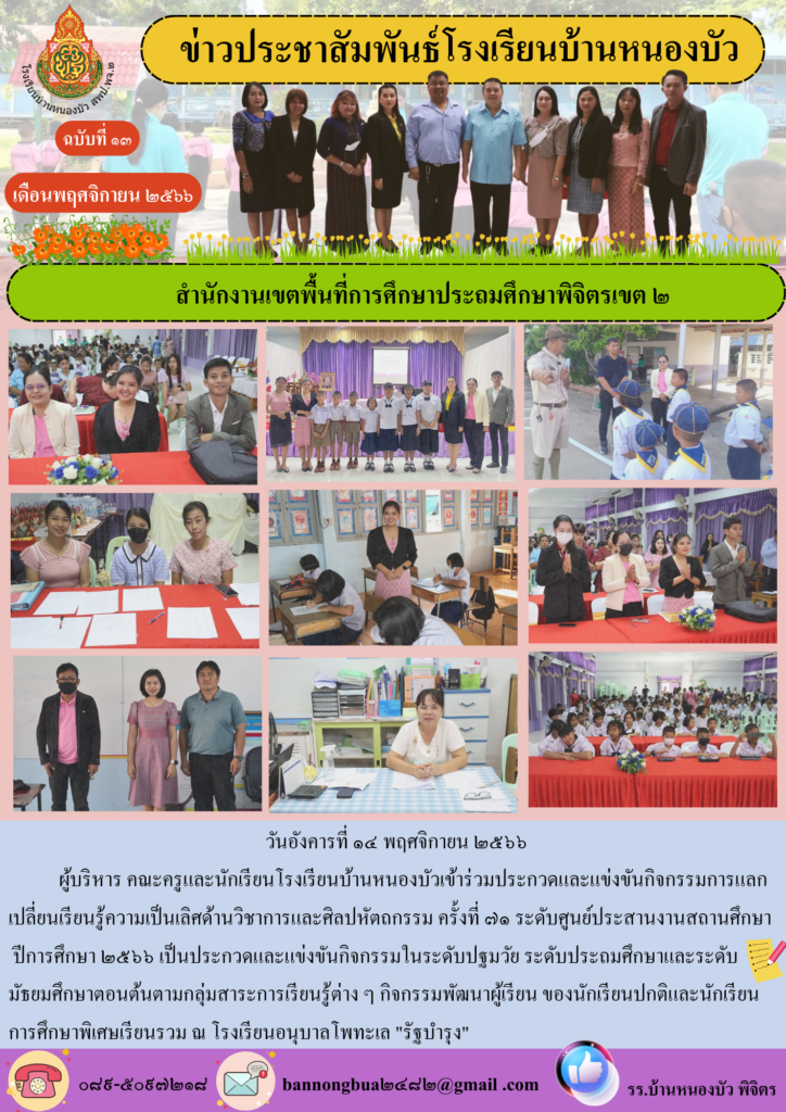 ร่วมประกวดและแข่งขันกิจกรรมการแลกเปลี่ยนเรียนรู้ความเป็นเลิศด้านวิชาการและศิลปหัตถกรรม ครั้งที่ ๗๑ ระดับศูนย์ประสานงานสถานศึกษา ปีการศึกษา ๒๕๖๖