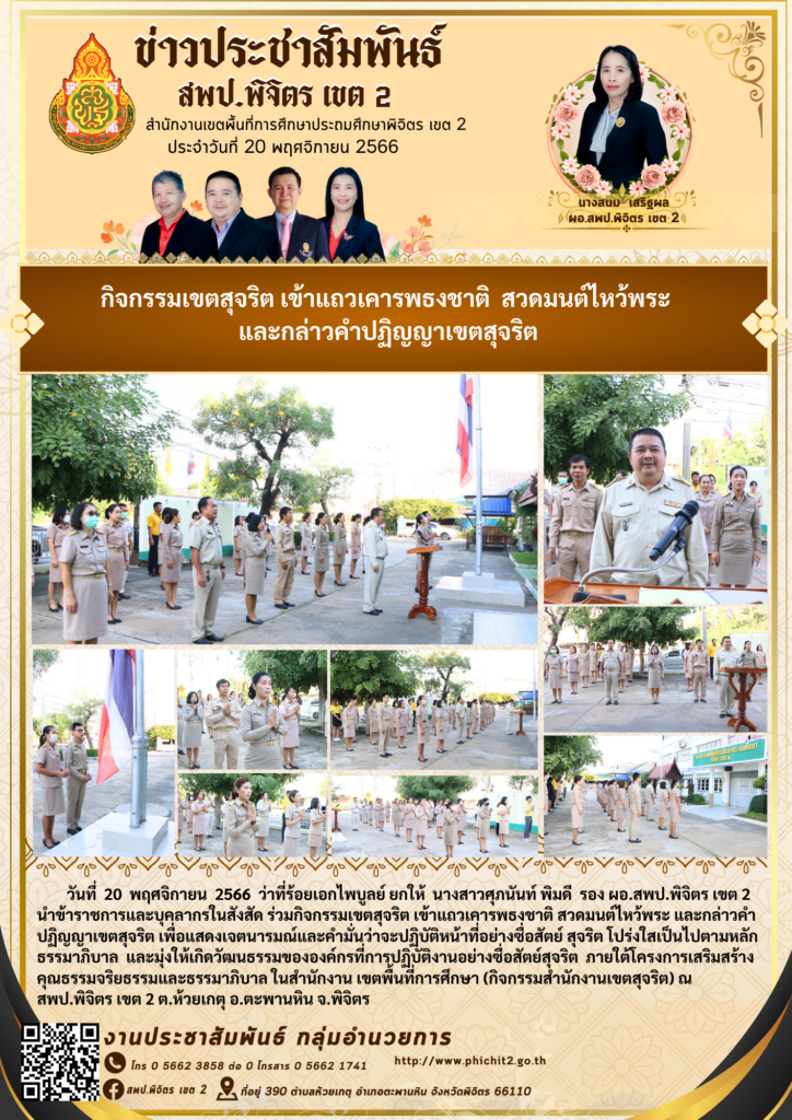 กิจกรรมเขตสุจริต เข้าแถวเคารพธงชาติ สวดมนต์ไหว้พระ และกล่าวคำปฏิญญาเขตสุจริต