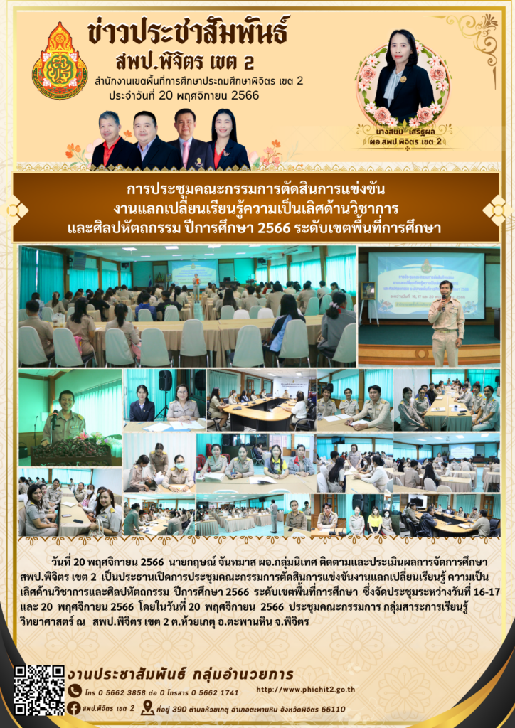 การประชุมคณะกรรมการตัดสินการแข่งขัน งานแลกเปลี่ยนเรียนรู้ความเป็นเลิศด้านวิชาการ และศิลปหัตถกรรม ปีการศึกษา 2566 ระดับเขตพื้นที่การศึกษา