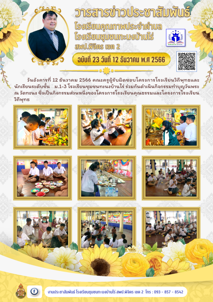 กิจกรรมทำบุญวันพระ โครงการโรงเรียนวิถีพุทธ