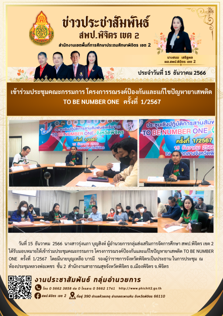 เข้าร่วมประชุมคณะกรรมการ โครงการรณรงค์ป้องกันและแก้ไขปัญหายาเสพติด TO BE NUMBER ONE ครั้งที่ 1/2567