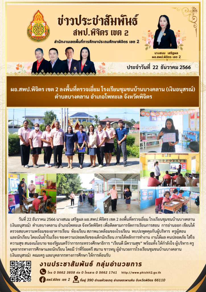 ผอ.สพป.พิจิตร เขต 2 ลงพื้นที่ตรวจเยี่ยม โรงเรียนชุมชนบ้านบางคลาน (เงินอนุสรณ์) ตำบลบางคลาน อำเภอโพทะเล จังหวัดพิจิตร