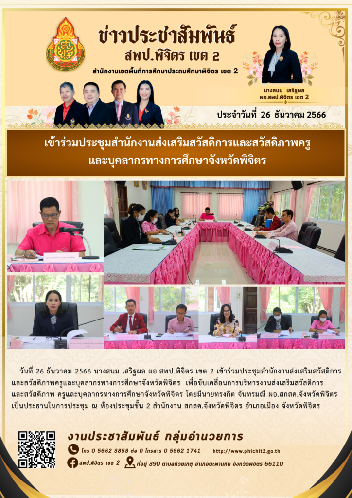 เข้าร่วมประชุมสำนักงานส่งเสริมสวัสดิการและสวัสดิภาพครู และบุคลากรทางการศึกษาจังหวัดพิจิตร
