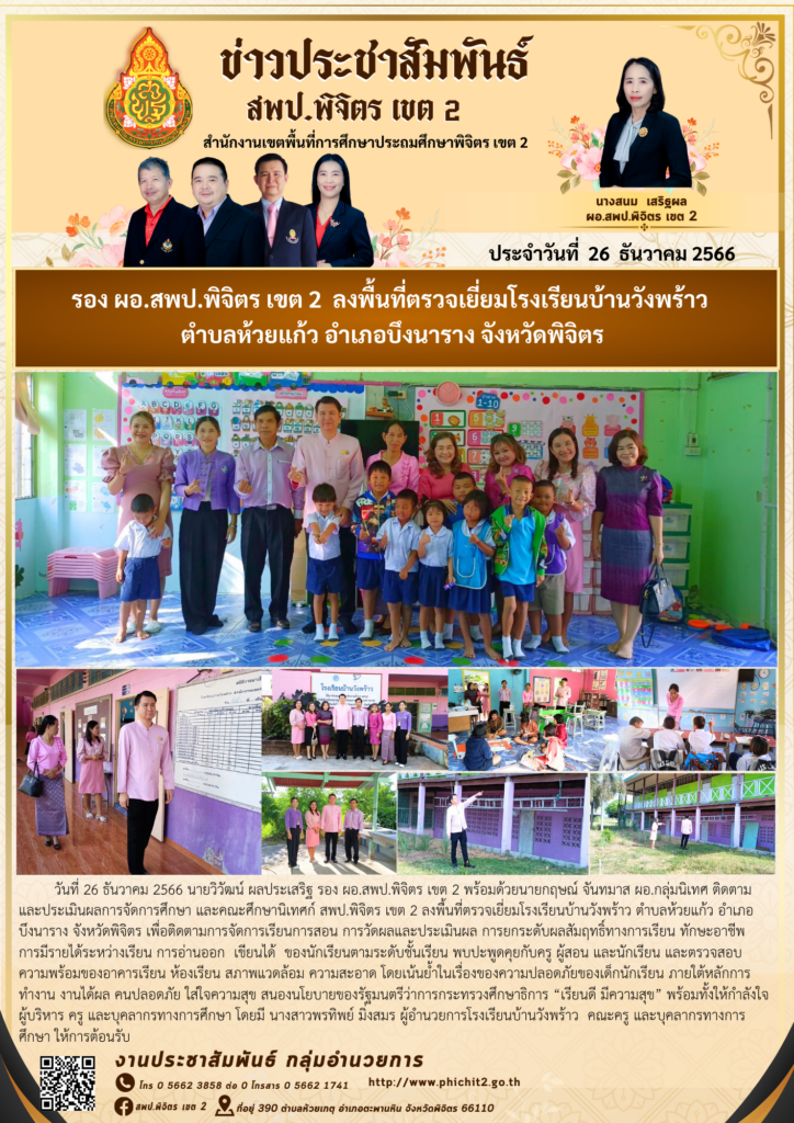 รอง ผอ.สพป.พิจิตร เขต 2 ลงพื้นที่ตรวจเยี่ยมโรงเรียนบ้านวังพร้าว ตำบลห้วยแก้ว อำเภอบึงนาราง จังหวัดพิจิตร