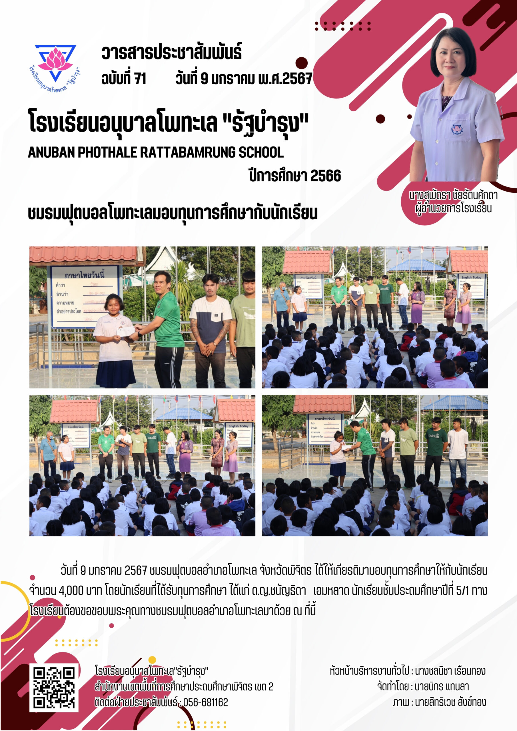 ชมรมฟุตบอลโพทะเลมอบทุนการศึกษากับนักเรียน