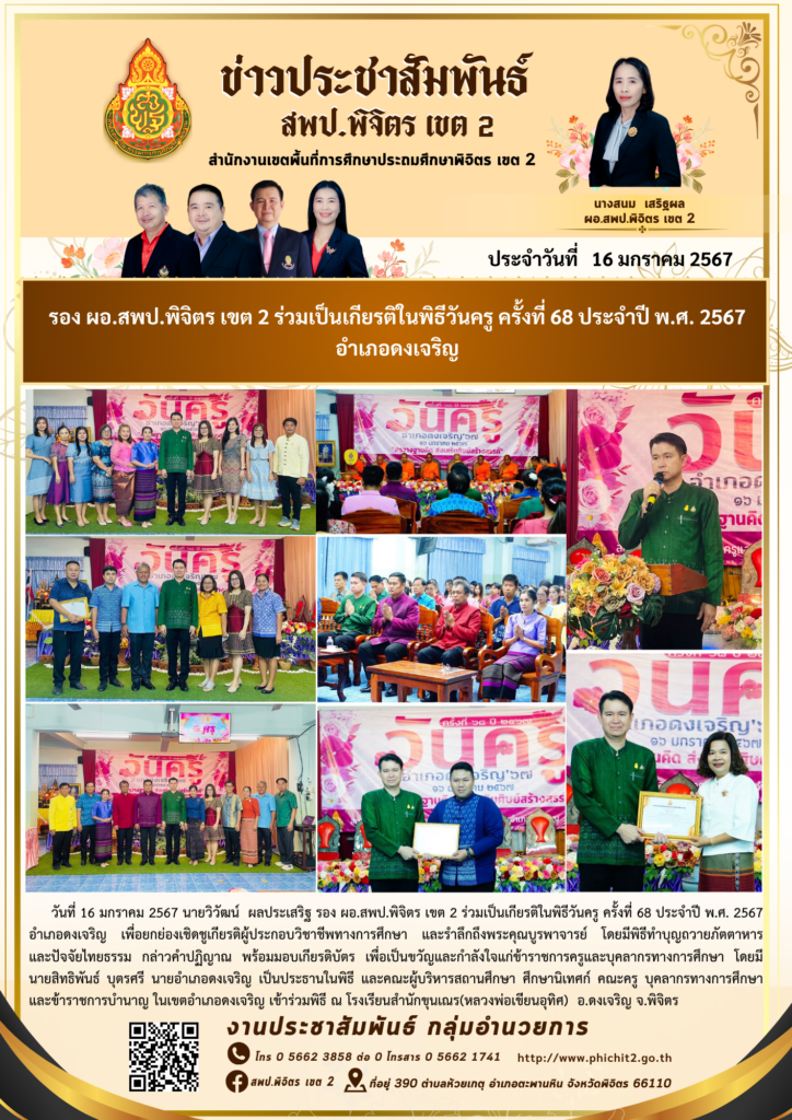 รอง ผอ.สพป.พิจิตร เขต 2 ร่วมเป็นเกียรติในพิธีวันครู ครั้งที่ 68 ประจำปี พ.ศ. 2567 อำเภอดงเจริญ