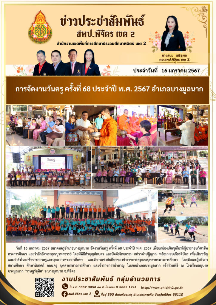 การจัดงานวันครู ครั้งที่ 68 ประจำปี พ.ศ. 2567 อำเภอบางมูลนาก