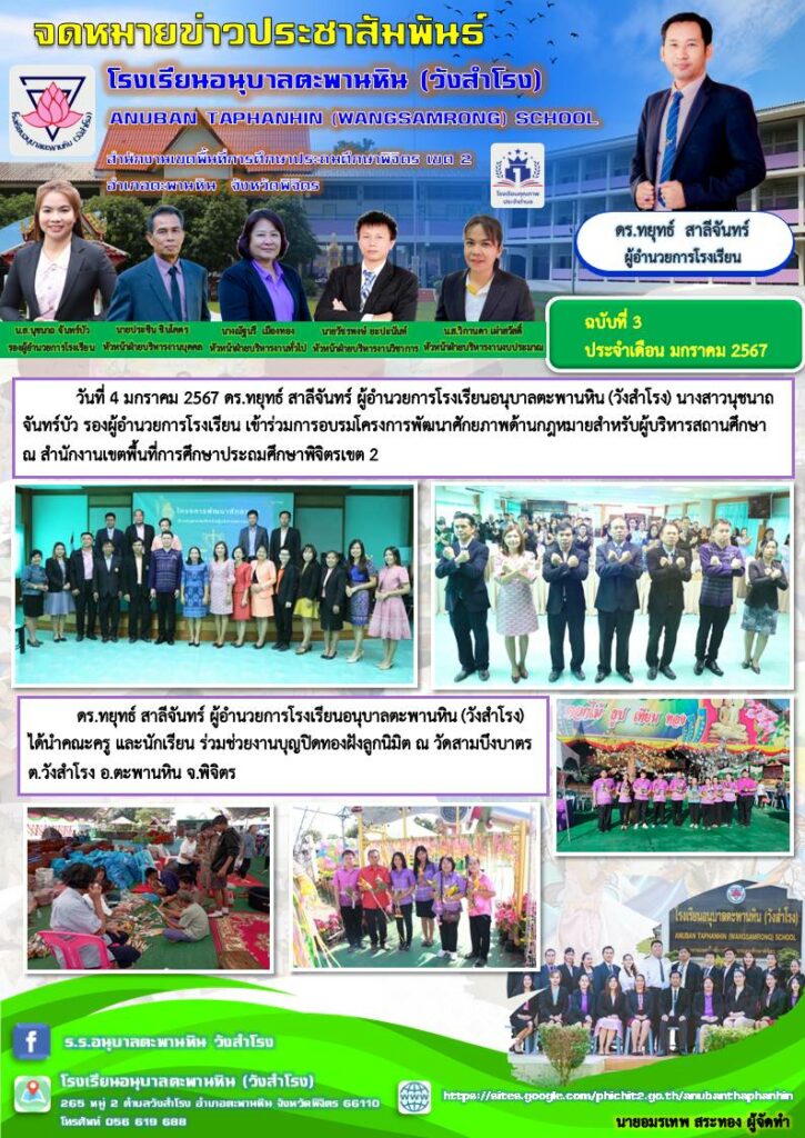วันที่ 4 มกราคม 2567 ดร.ทยุทธ์ สาลีจันทร์ ผู้อำนวยการโรงเรียนอนุบาลตะพานหิน (วังสำโรง) นางสาวนุชนาถ จันทร์บัว รองผู้อำนวยการโรงเรียน เข้าร่วมการอบรมโครงการพัฒนาศักยภาพด้านกฎหมายสำหรับผู้บริหารสถานศึกษา ณ สำนักงานเขตพื้นที่การศึกษาประถมศึกษาพิจิตรเขต 2