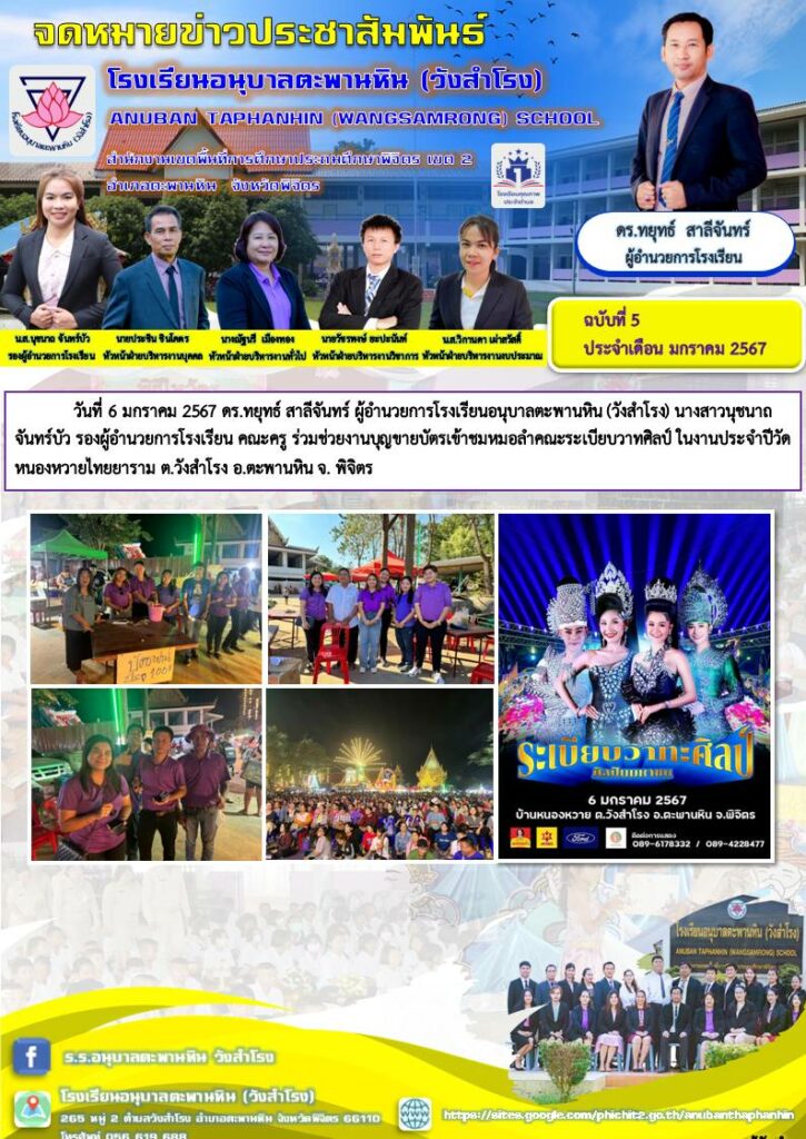 วันที่ 6 มกราคม 2567 ดร.ทยุทธ์ สาลีจันทร์ ผู้อำนวยการโรงเรียนอนุบาลตะพานหิน (วังสำโรง) นางสาวนุชนาถ จันทร์บัว รองผู้อำนวยการโรงเรียน คณะครู ร่วมช่วยงานบุญขายบัตรเข้าชมหมอลำคณะระเบียบวาทศิลป์ ในงานประจำปีวัดหนองหวายไทยยาราม ต.วังสำโรง อ.ตะพานหิน จ. พิจิตร