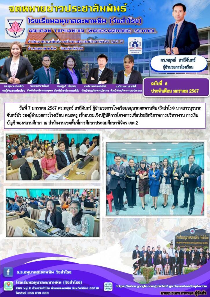 วันที่ 7 มกราคม 2567 ดร.ทยุทธ์ สาลีจันทร์ ผู้อำนวยการโรงเรียนอนุบาลตะพานหิน (วังสำโรง) นางสาวนุชนาถ จันทร์บัว รองผู้อำนวยการโรงเรียน คณะครู เข้าอบรมเชิงปฏิบัติการโครงการเพิ่มประสิทธิภาพการบริหารงาน การเงิน บัญชี ของสถานศึกษา ณ สำนักงานเขตพื้นที่การศึกษาประถมศึกษาพิจิตร เขต 2