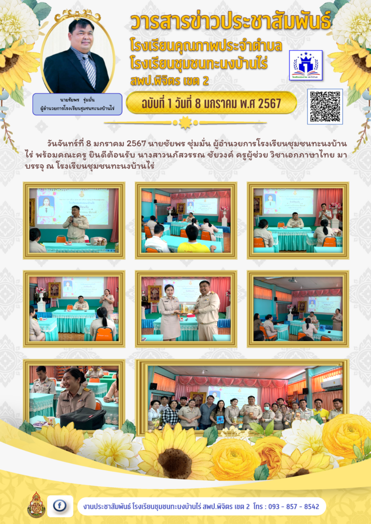 วันจันทร์ที่ 8 มกราคม 2567 นายชัยพร ชุ่มมั่น ผู้อำนวยการโรงเรียนชุมชนทะนงบ้านไร่ พร้อมคณะครู ยินดีต้อนรับ นางสาวนภัสวรรณ ชัยวงค์ ครูผู้ช่วย วิชาเอกภาษาไทย มาบรรจุ ณ โรงเรียนชุมชนทะนงบ้านไร่