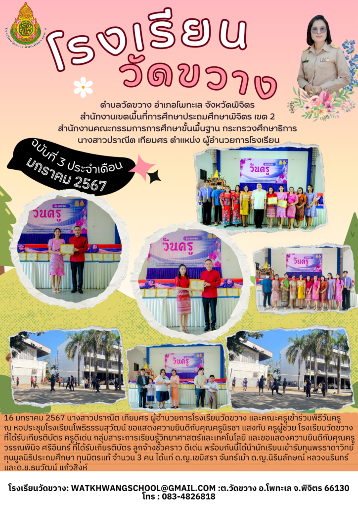 ผู้อำนวยการโรงเรียนวัดขวาง และคณะครูเข้าร่วมพิธีวันครู ณ หอประชุมโรงเรียนโพธิธรรมสุวัฒน์