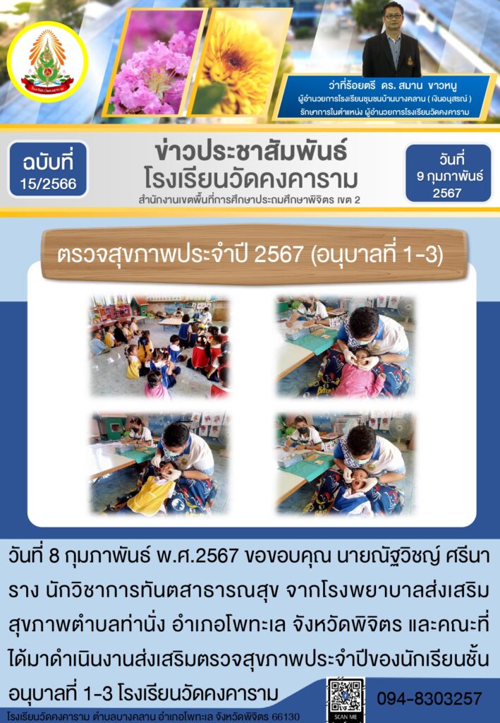 ตรวจสุขภาพประจำปี 2567 (อนุบาลที่ 1-3)