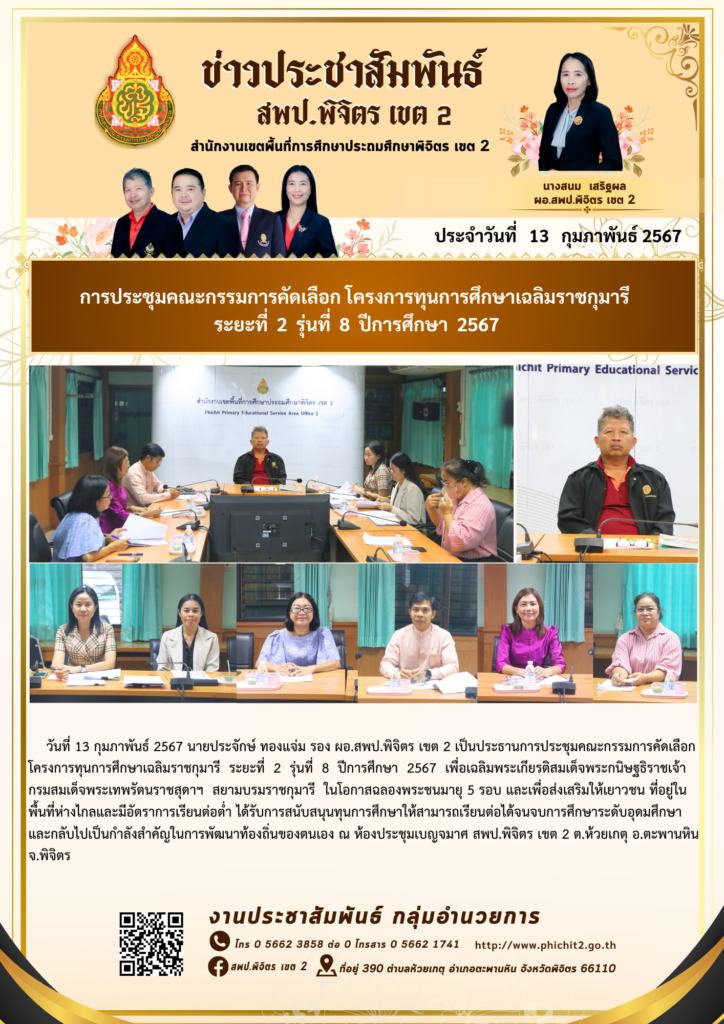 การประชุมคณะกรรมการคัดเลือก โครงการทุนการศึกษาเฉลิมราชกุมารี ระยะที่ 2 รุ่นที่ 8 ปีการศึกษา 2567