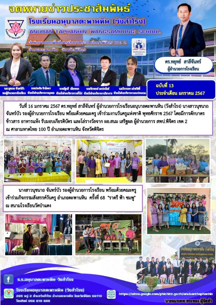 จดหมายข่าวประชาสัมพันธ์ โรงเรียนอนุบาลตะพานหิน (วังสำโรง) ฉบับที่ 13 ประจำเดือนมกราคม 2567