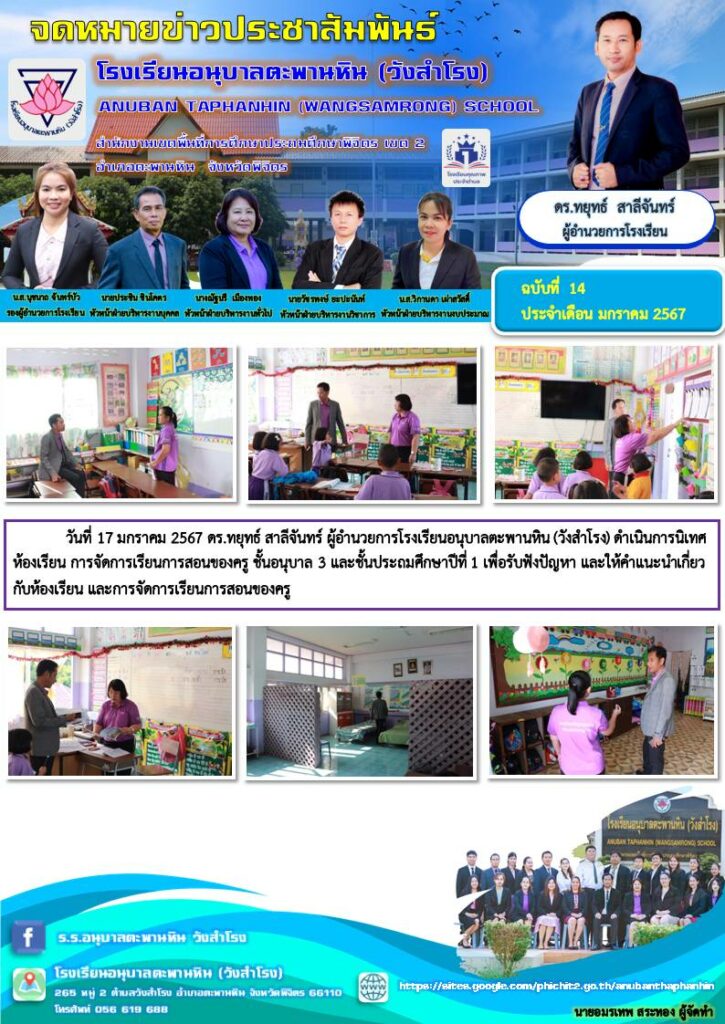 จดหมายข่าวประชาสัมพันธ์ โรงเรียนอนุบาลตะพานหิน (วังสำโรง) ฉบับที่ 14 ประจำเดือนมกราคม 2567