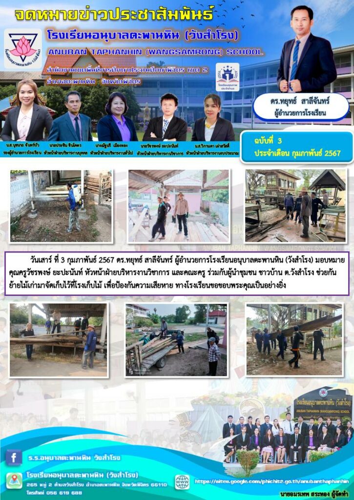 จดหมายข่าวประชาสัมพันธ์ โรงเรียนอนุบาลตะพานหิน (วังสำโรง) ฉบับที่ 3 ประจำเดือนกุมพาพันธ์ 2567