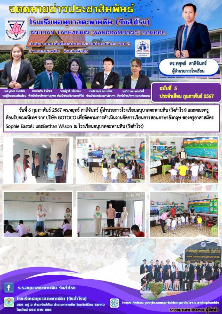 จดหมายข่าวประชาสัมพันธ์ โรงเรียนอนุบาลตะพานหิน (วังสำโรง) ฉบับที่ 5 ประจำเดือนกุมพาพันธ์ 2567
