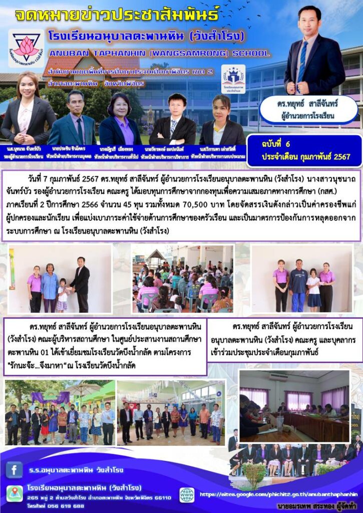 จดหมายข่าวประชาสัมพันธ์ โรงเรียนอนุบาลตะพานหิน (วังสำโรง) ฉบับที่ 6 ประจำเดือนกุมพาพันธ์ 2567