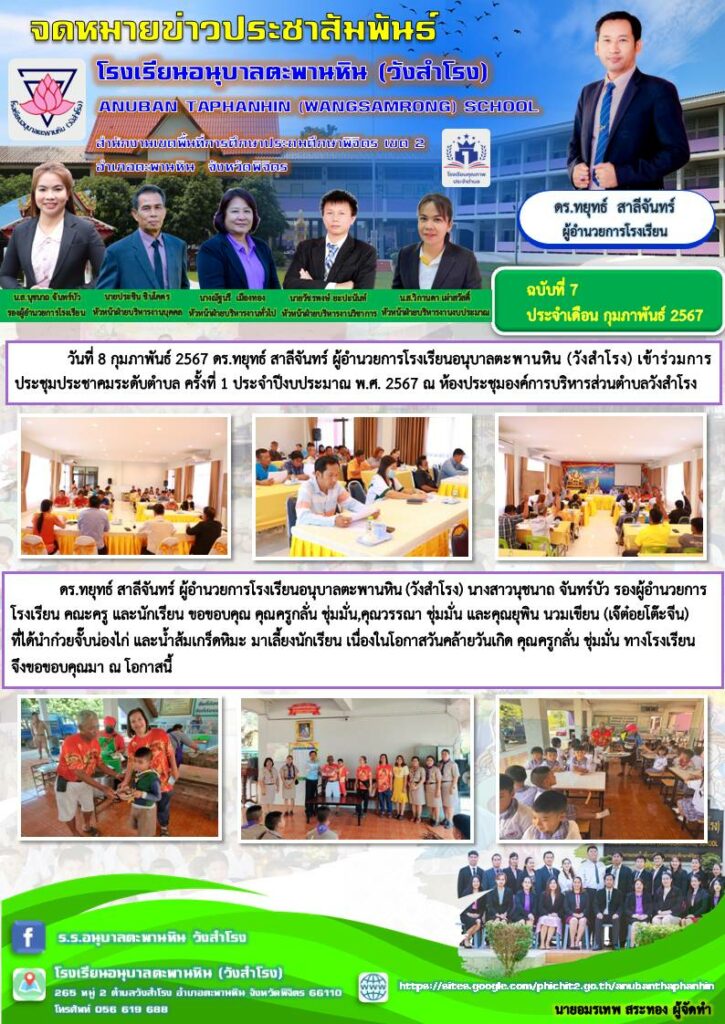 จดหมายข่าวประชาสัมพันธ์ โรงเรียนอนุบาลตะพานหิน (วังสำโรง) ฉบับที่ 7 ประจำเดือนกุมพาพันธ์ 2567
