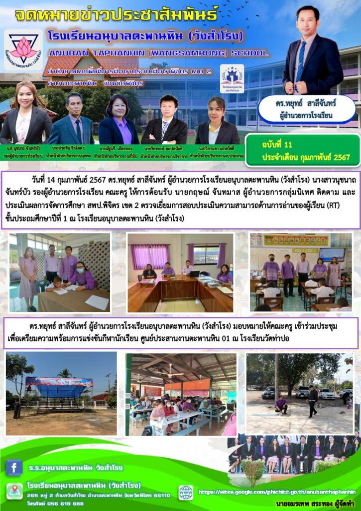 จดหมายข่าวประชาสัมพันธ์ โรงเรียนอนุบาลตะพานหิน (วังสำโรง) ฉบับที่ 11 ประจำเดือนกุมพาพันธ์ 2567