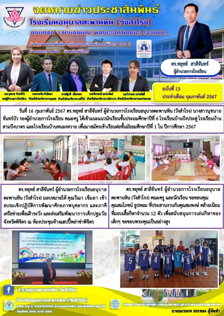 จดหมายข่าวประชาสัมพันธ์ โรงเรียนอนุบาลตะพานหิน (วังสำโรง) ฉบับที่ 13 ประจำเดือนกุมพาพันธ์ 2567