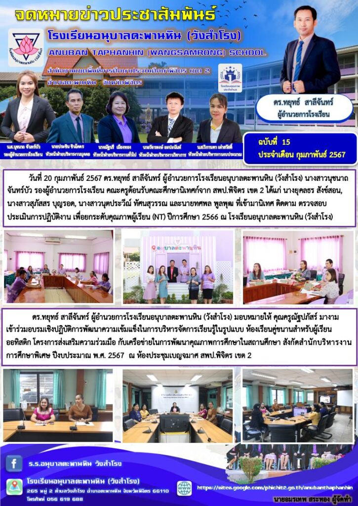 จดหมายข่าวประชาสัมพันธ์ โรงเรียนอนุบาลตะพานหิน (วังสำโรง) ฉบับที่ 15 ประจำเดือนกุมพาพันธ์ 2567