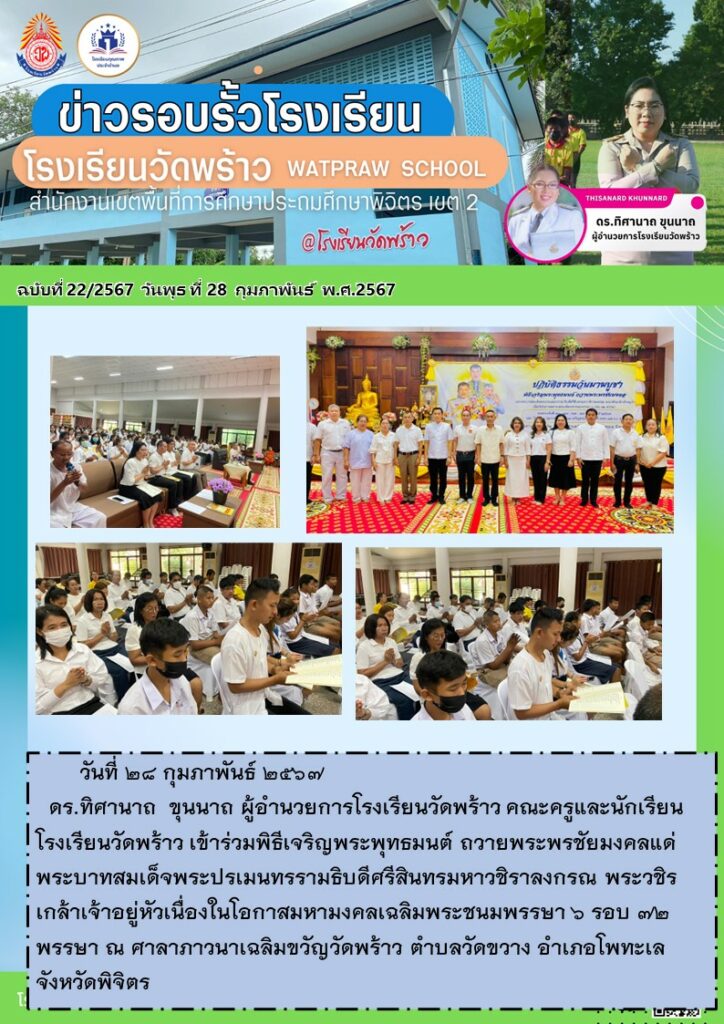 โรงเรียนวัดพร้าวเข้าร่วมพิธีเจริญพระพุทธมนต์