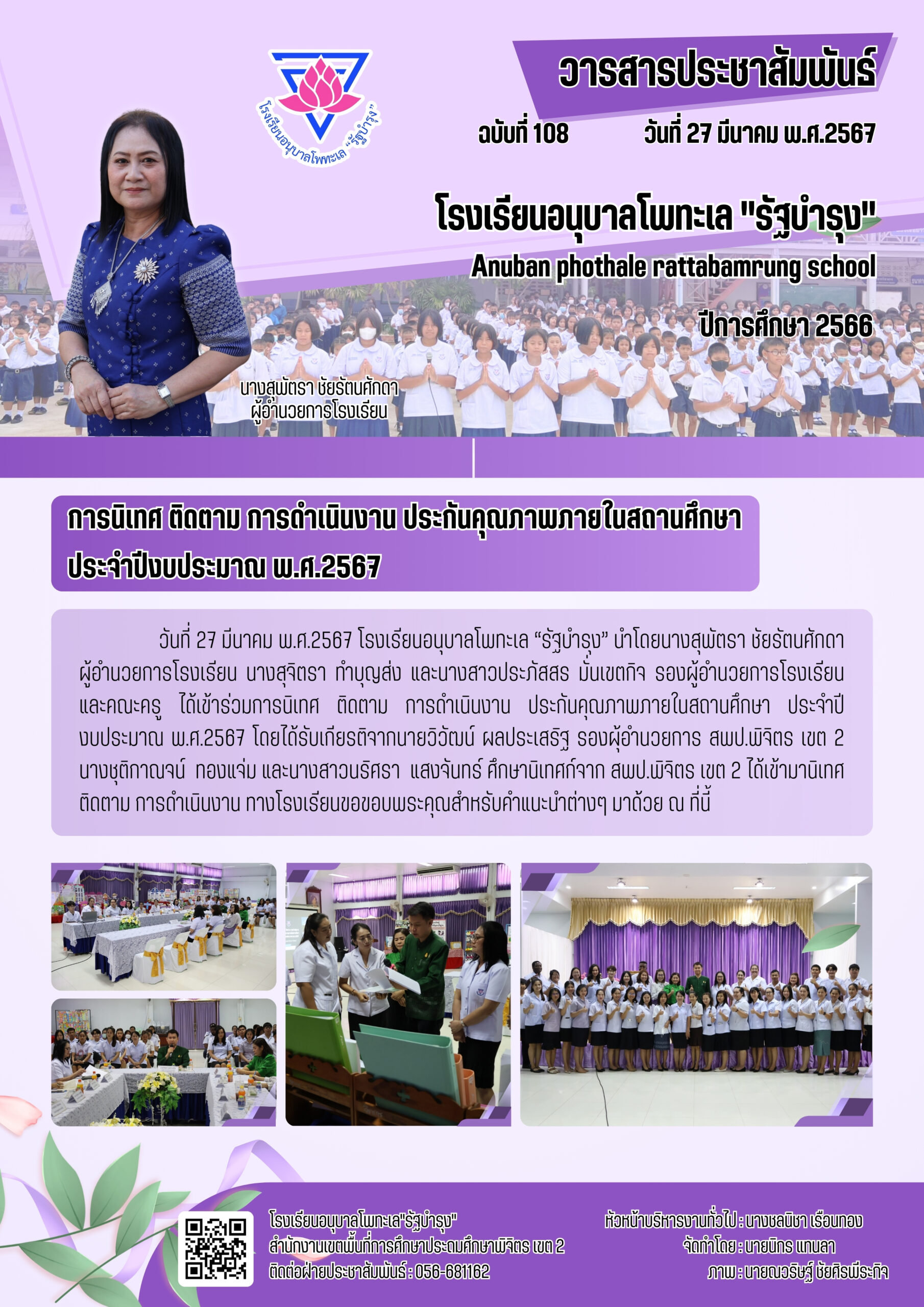 การนิเทศ ติดตาม การดำเนินงาน ประกันคุณภาพภายในสถานศึกษา ประจำปีงบประมาณ พ.ศ.2567