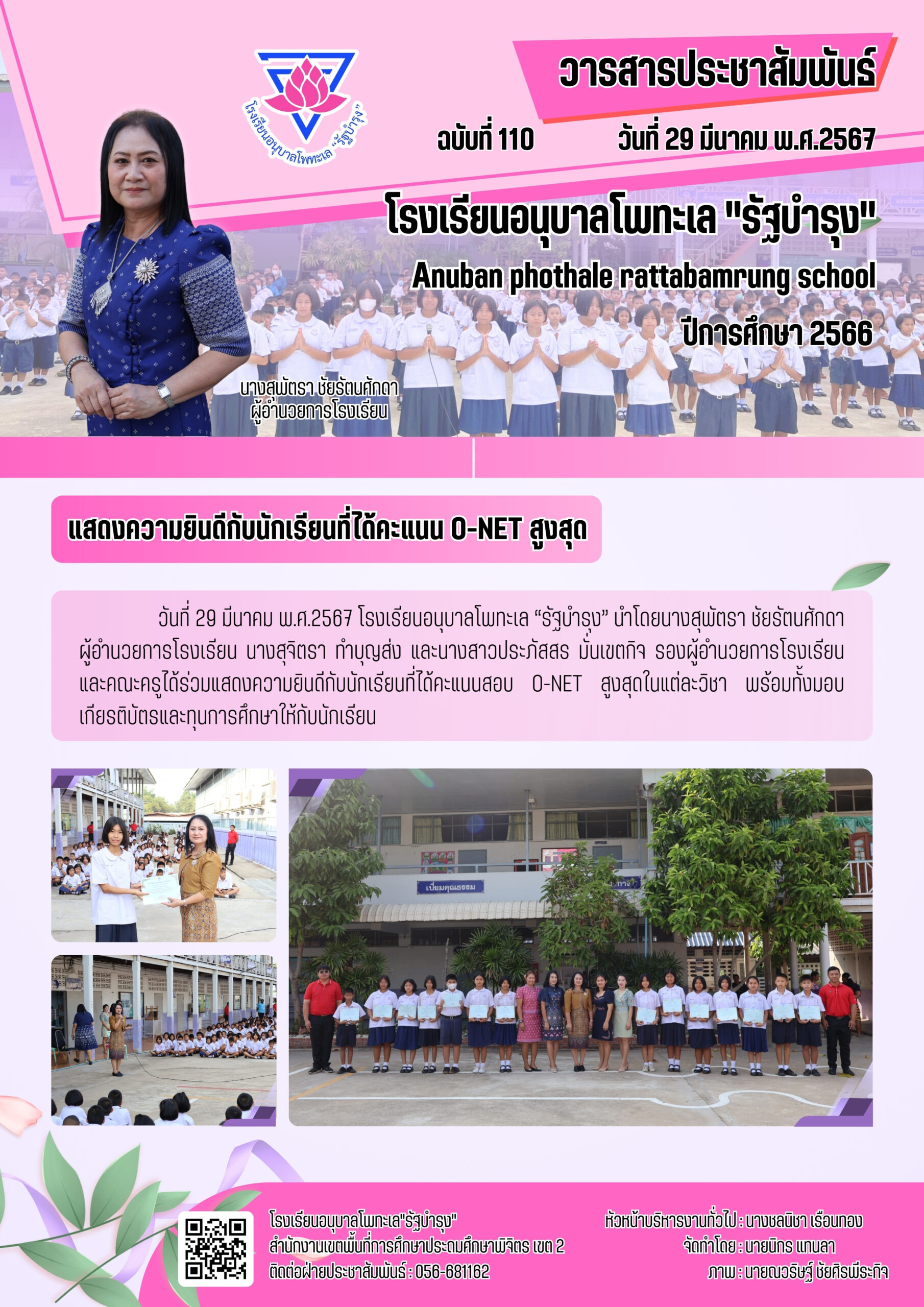 แสดงความยินดีกับนักเรียนที่ได้คะแนน O-NET สูงสุด