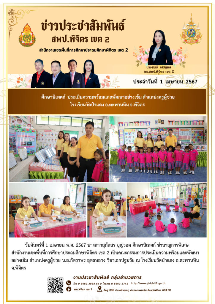 ศึกษานิเทศก์ ประเมินความพร้อมและพัฒนาอย่างเข้ม ตำแหน่งครูผู้ช่วย โรงเรียนวัดป่าแดง อ.ตะพานหิน จ.พิจิตร