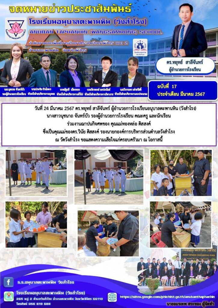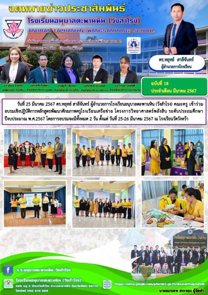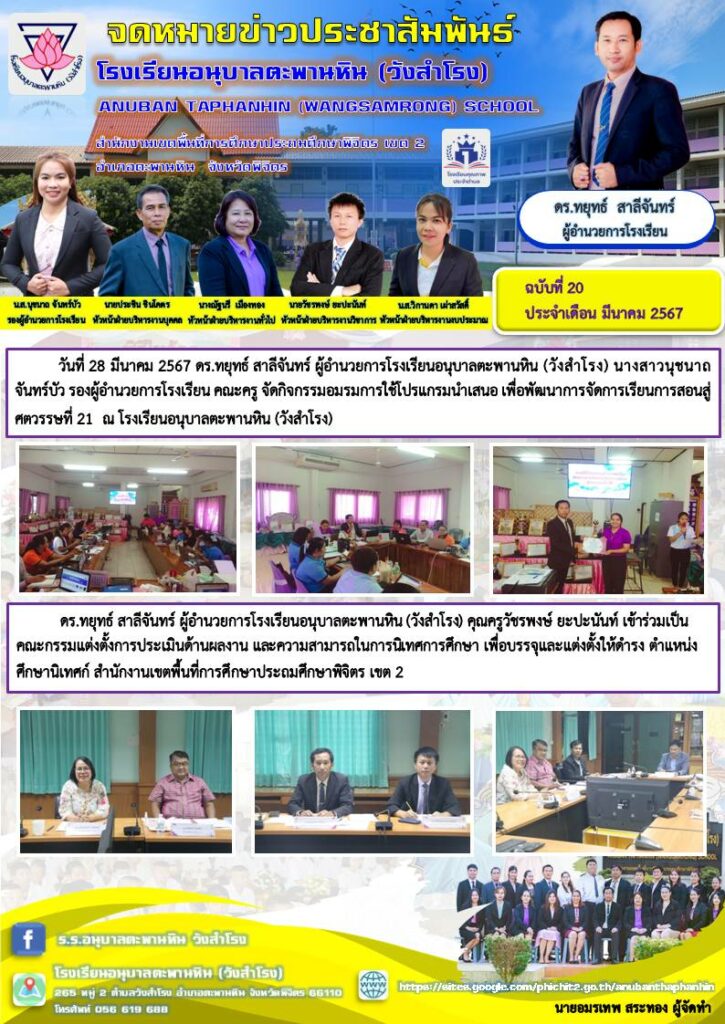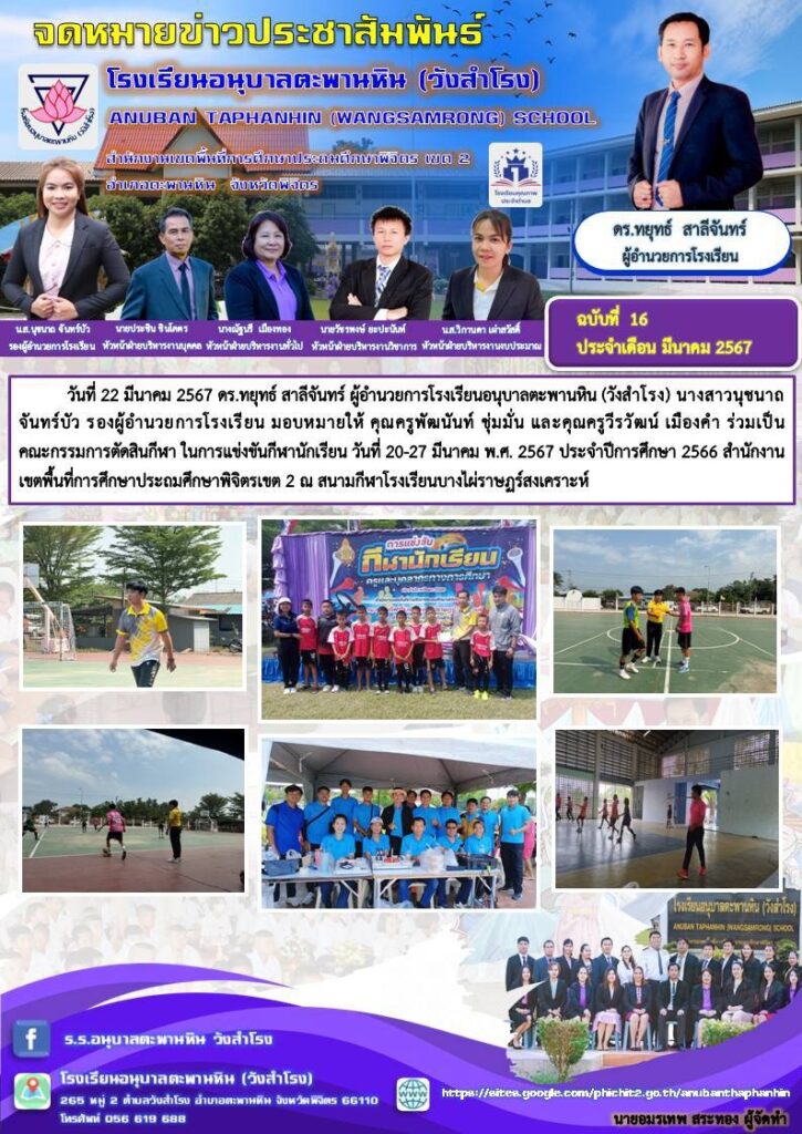 จดหมายข่าวประชาสัมพันธ์ โรงเรียนอนุบาลตะพานหิน (วังสำโรง) ฉบับที่ 16 ถึง 20 ประจำเดือนมีนาคม 2567