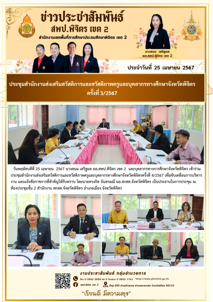 ประชุมสำนักงานส่งเสริมสวัสดิการและสวัสดิภาพครูและบุคลากรทางศึกษาจังหวัดพิจิตรครั้งที่ 4/2567