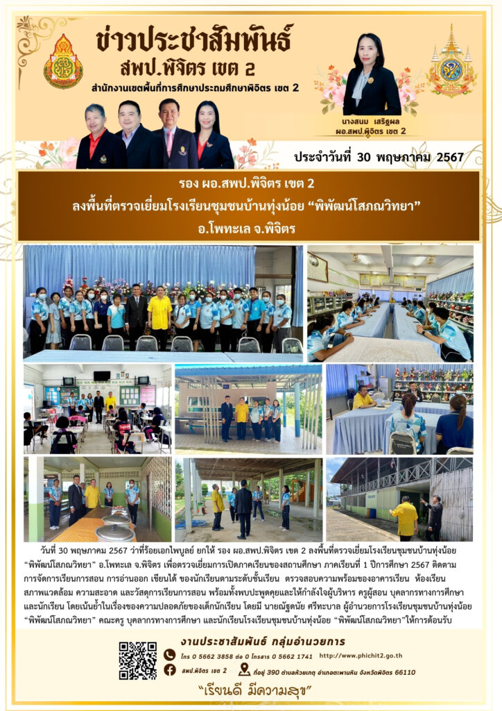 รอง ผอ.สพป.พิจิตร เขต 2ลงพื้นที่ตรวจเยี่ยมโรงเรียนชุมชนบ้านทุ่งน้อย “พิพัฒน์โสภณวิทยา”อ.โพทะเล จ.พิจิตร