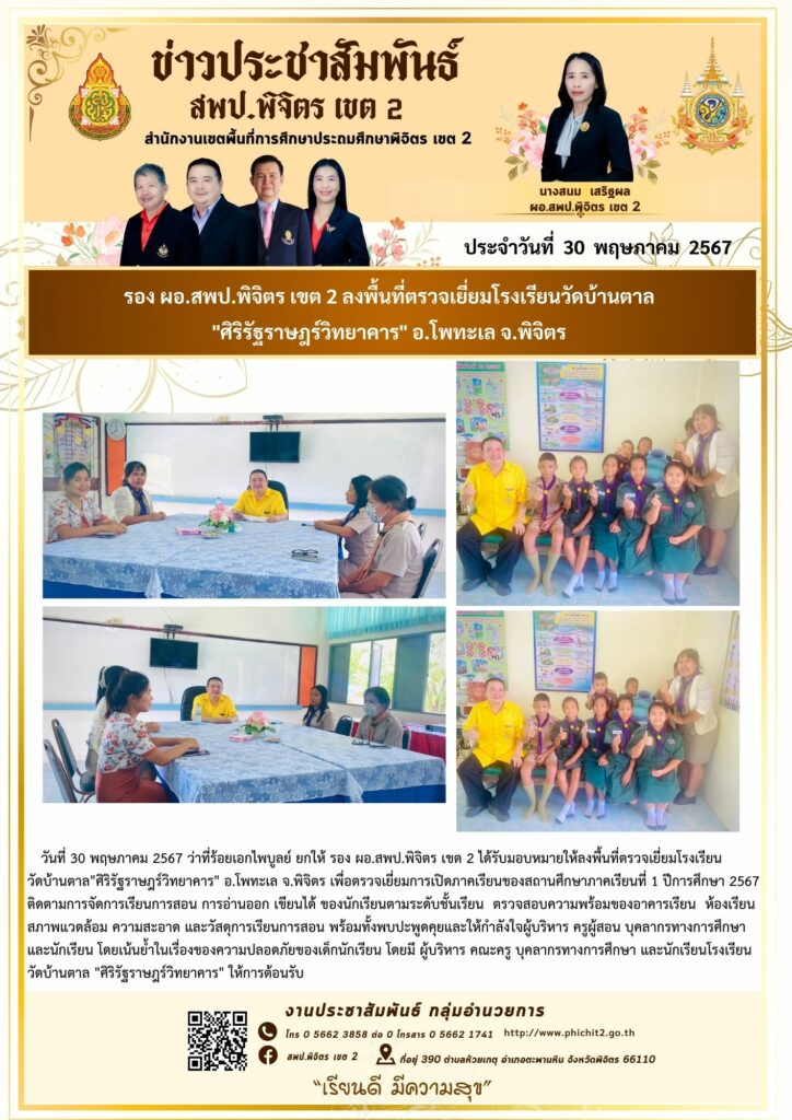 รอง ผอ.สพป.พิจิตร เขต 2 ลงพื้นที่ตรวจเยี่ยมโรงเรียนวัดบ้านตาล “ศิริรัฐราษฎร์วิทยาคาร” อ.โพทะเล จ.พิจิตร