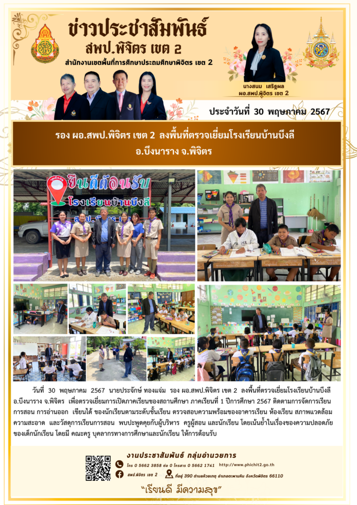รอง ผอ.สพป.พิจิตร เขต 2 ลงพื้นที่ตรวจเยี่ยมโรงเรียนบ้านบึงลี อ.บึงนาราง จ.พิจิตร